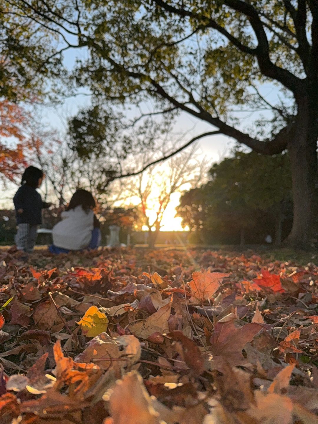 ふんわりと重なった落ち葉の上に、やさしい夕日の光が降り注いでいます。歩くたびに聞こえてきそうな落ち葉の音や、それにはしゃぐ子どもたちの楽しげな声まで、自然と想像が広がります。子どもたちと同じくらいの低い位置から見た景色が、この場所そのもののぬくもりを伝えてくれます。そろそろ帰ろうか、そんな声が似合う、静かであたたかな秋の時間を写し取った一枚です。